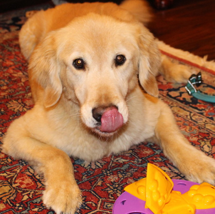 Plays with anybody or anything. 9-year old Golden Retriever.