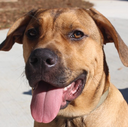 Our newest staff member! No clue yet, but lots of potential ;-) 7-month-old Mastiff/hound/ridgeback mix, aka Heinz 57!
